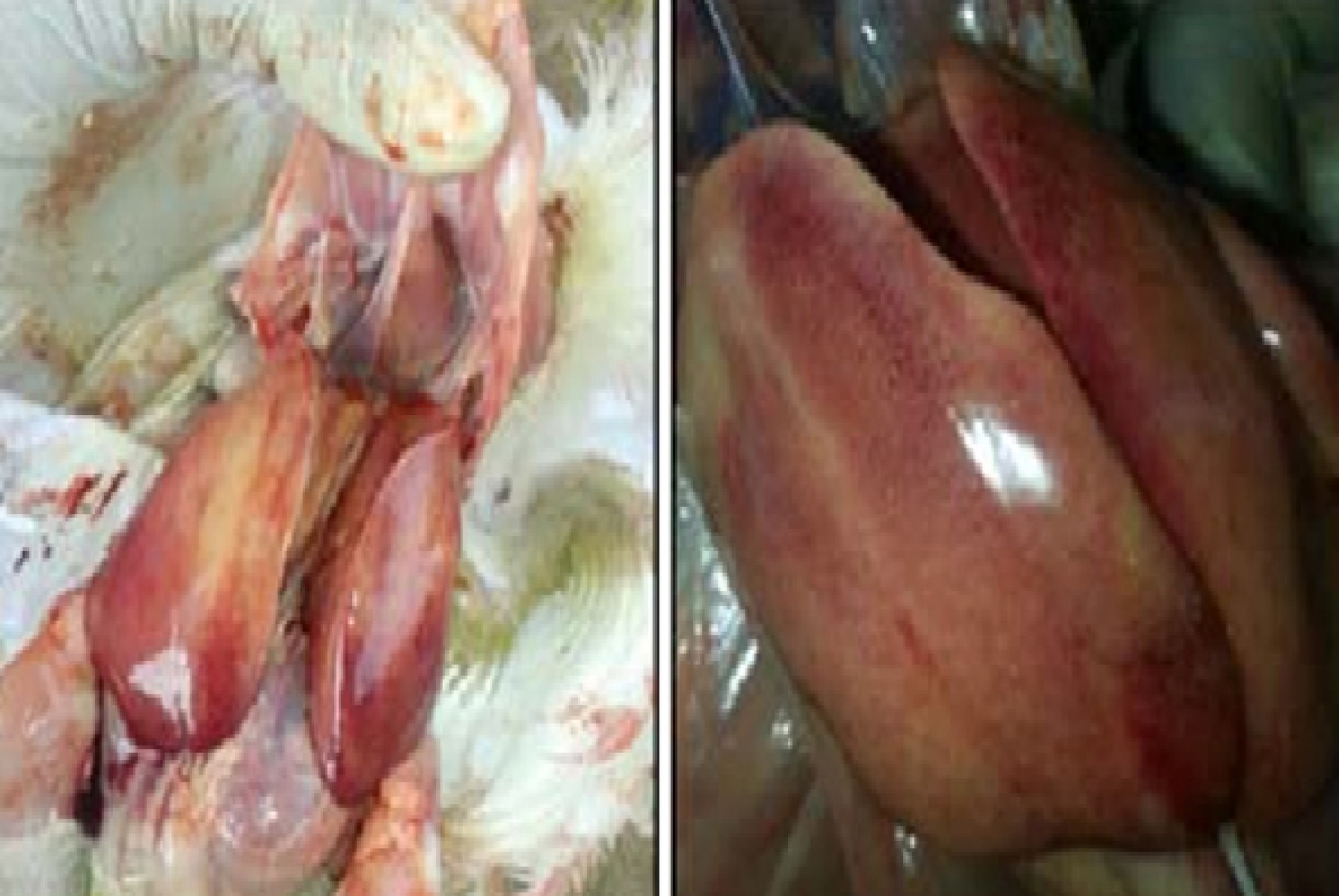 मुटुको बाहिरी झिलीमा ३–२० मि.ली बाक्लो पानी जम्मा हुन्छ र जसको पि.एच७९एज् ठ०रहेको हुन्छ । झिलीले ढाकेको मुटु तैरिरहेकोजस्तै देखिन्छ । मुटुको बाहिरपट्टिको बोसोमा९एभचष्अबचमष्ब िाबत० रगत पोखिए जस्तो रक्तश्राव९एभतभअजष्ब िज्बझयचचजबनभ० देखिन्छ । फिक्का, कमलो कलेजो, निलो र सुन्निएको फोक्सो र सानो हुदै गरेको बर्षा फेब्रिकस पनि देख्न सकिन्छ । त्यसै गरि मृगौलामा युरेट जम्मा हुने र मृगौलामा सेतो थोप्ला देखिने हुन्छ भने घट्टमा घाउ देखिन्छ ।